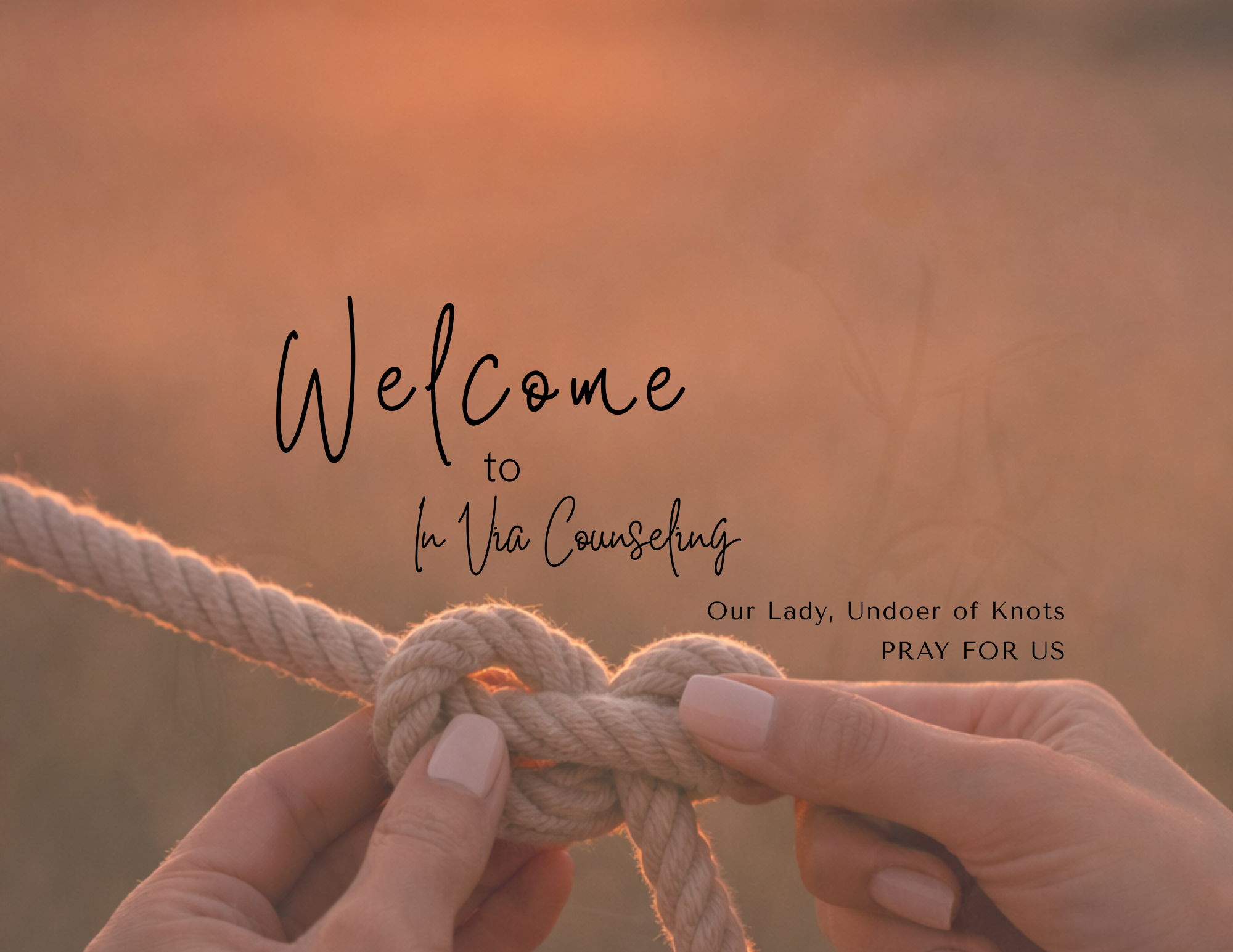 The In Via Counseling logo depicts a rope that has many knots. The knots near the end are loosened, until they are completely free. In Via Counseling is entrusted to Our Lady Undoer of Knots. It is my belief and experience that Mary is always willing to accompany us through the deepest traumas in our lives to help us find freedom and healing. Her beauty, grit and intentionality are given freely to us as we work to undo some of the knots in our hearts.
